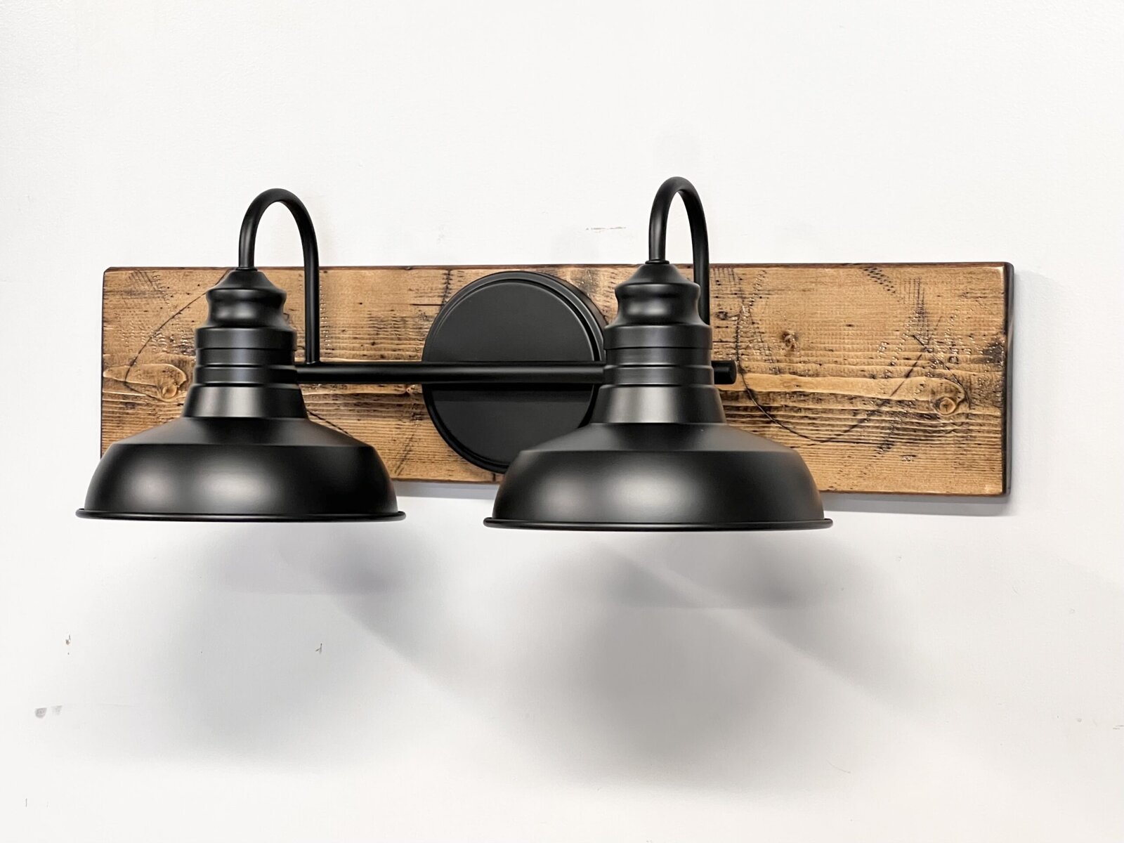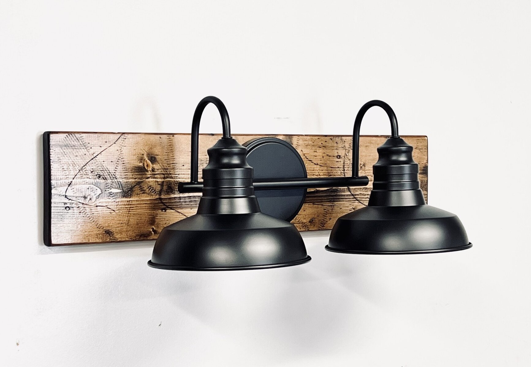 Update the look of your bathroom with this farmhouse, rustic light fixture. The neat combination of rustic wood, black shades and the exposed edison bulb will give your space a soft, warm glow. This wall-mounted light is perfect for bathrooms, bedrooms, and above mirrors in other areas of your home.