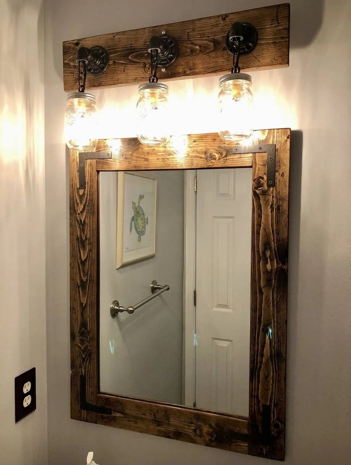 I love these lights! It gives the best country/shabby chic feel to my bathroom. I got the three light mason jar and it lights the bathroom very well. I was worried about that but plenty of light. I did get a little confused on the wires but very simple to connect and hang. If steering to the wall through the board use a power drill and finish by hand tightening so wood does not crack. The clear mason jars give our bathroom a bright shine with uniqueness.