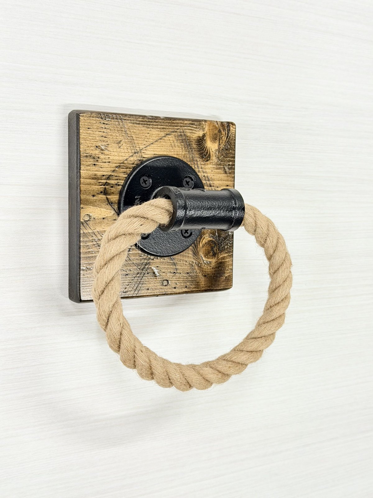 This rope towel holder ring on rustic wood is a great way to add a touch of warmth and character to your bathroom. The natural materials and distressed wood give it a cozy, lived-in feel that’s perfect for a rustic or farmhouse-style home.
